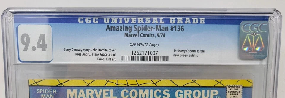 AMAZING SPIDER-MAN #136 - MARVEL 1974 - CGC 9.4 - 1ST NEW GREEN GOBLIN