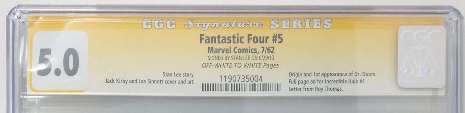FANTASTIC FOUR #5 - MARVEL 1962 - CGC 5.0 VG/FN - SIGNED BY STAN LEE - 1ST DR DOOM