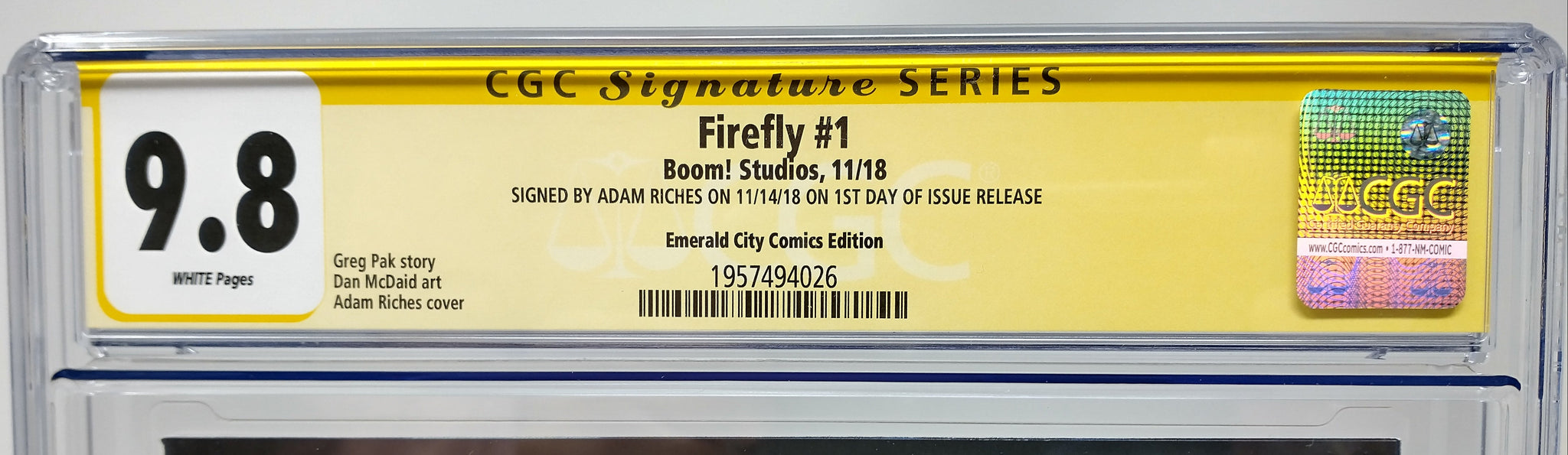 FIREFLY #1 EMERALD CITY EXCLUSIVE VAR - CGC 9.8 ADAM RICHES SIGNED 3