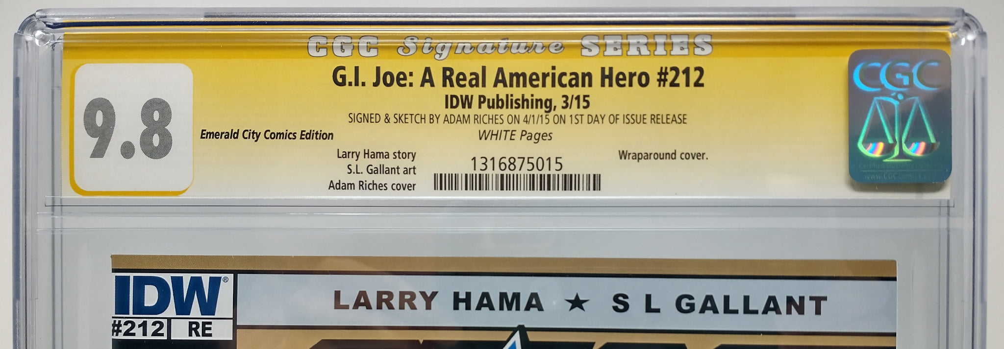 GI JOE A REAL AMERICAN HERO #212 EC EXCLUSIVE VAR SIGNED BY ADAM RICHES CGC 9.8 SERPENTOR SKETCH