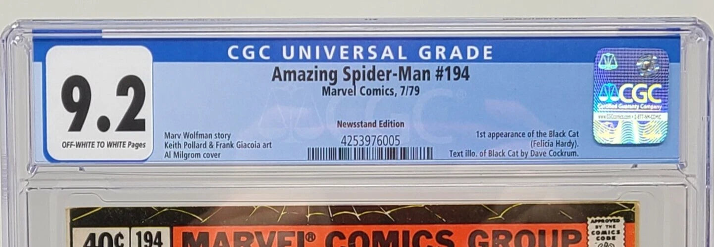 AMAZING SPIDER-MAN #194 - MARVEL 1979 - CGC 9.2 - 1ST BLACK CAT