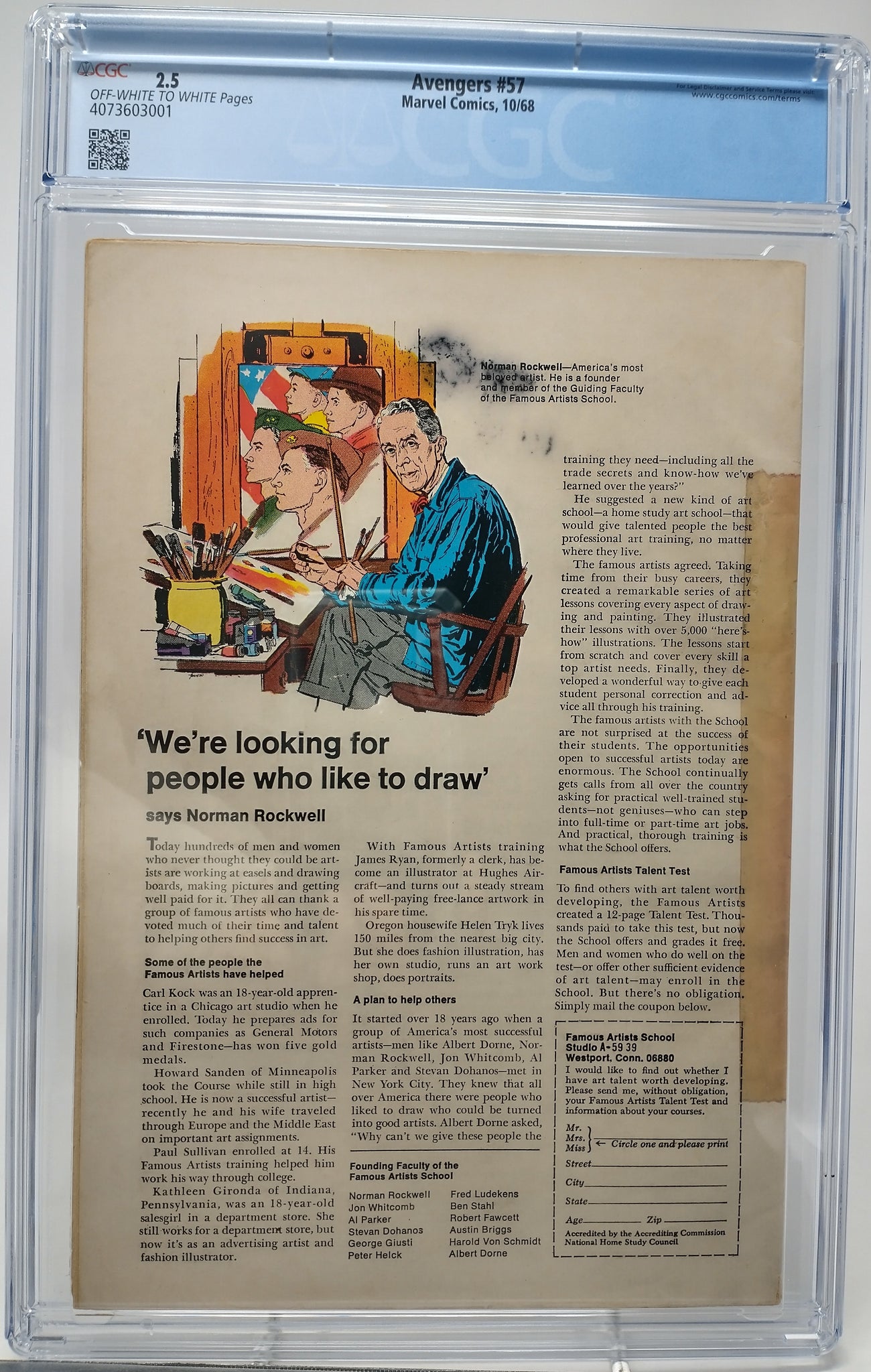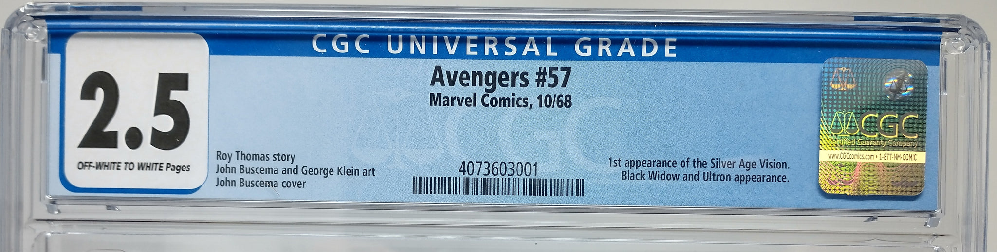 AVENGERS #57 - MARVEL 1968 - CGC 2.5 - 1ST APPEARANCE OF VISION & 2ND ULTRON