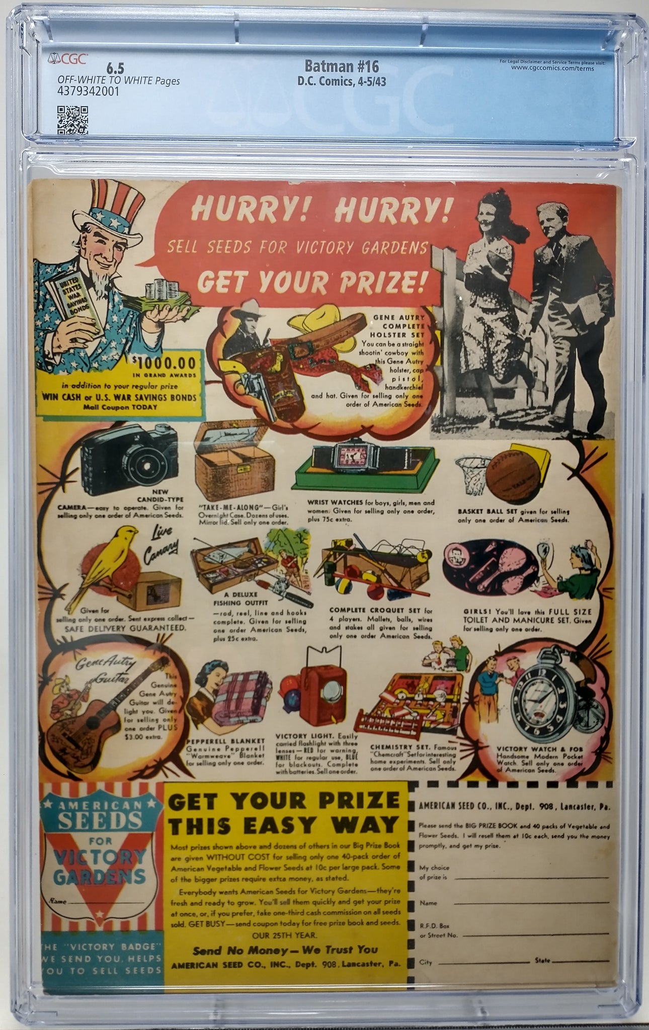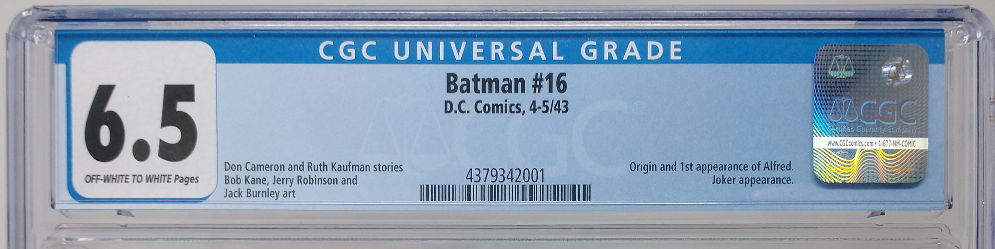 BATMAN #16 - DC 1943 - CGC 6.5 - 1ST ALFRED PENNYWORTH