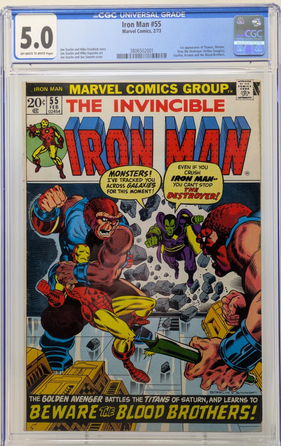 IRON MAN #55 - MARVEL 1973 - CGC 5.0 VG/FN - 1ST THANOS, DRAX, STARFOX APP