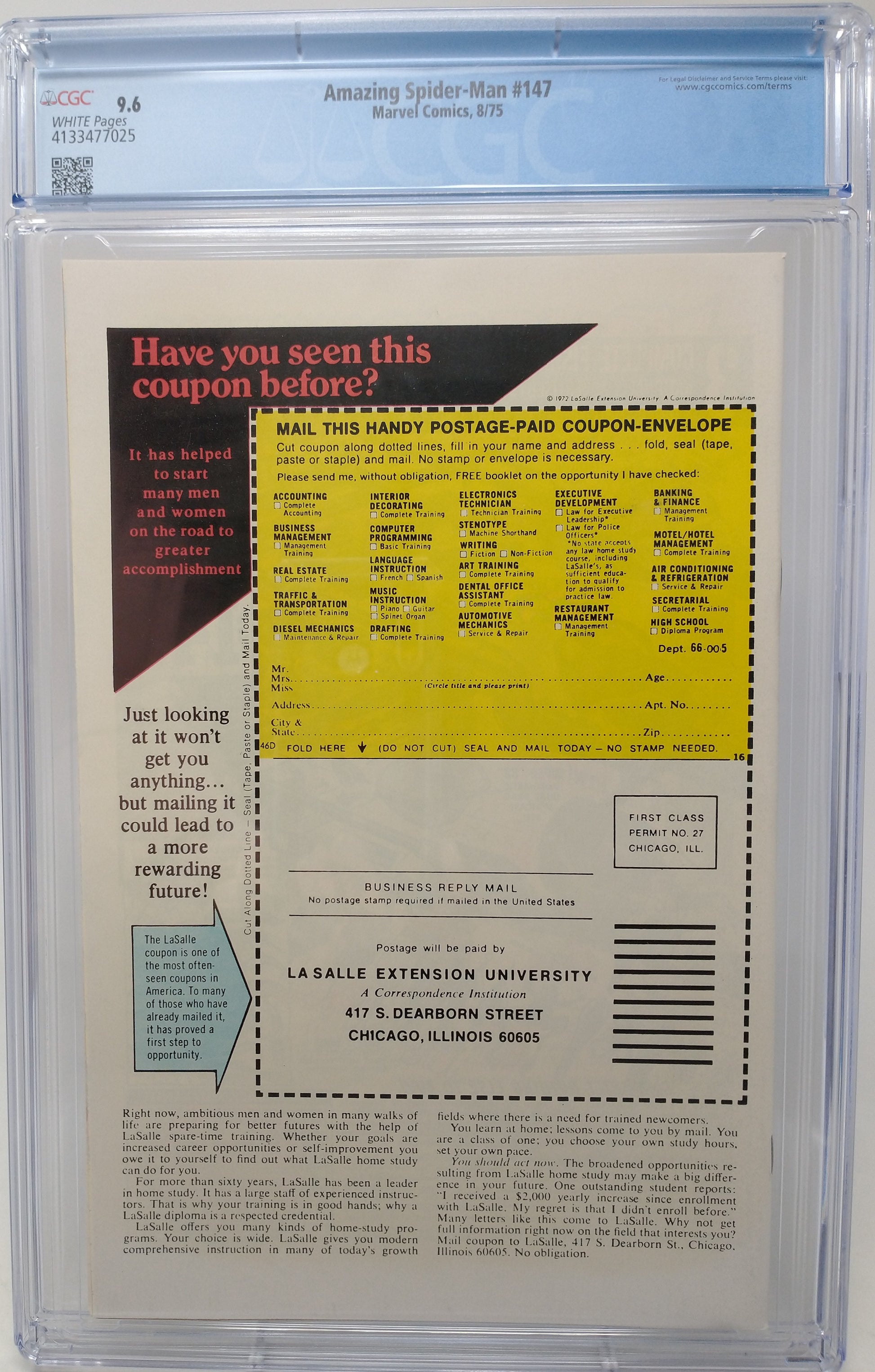 AMAZING SPIDER-MAN #147 - MARVEL 1975 - CGC 9.6 - GEWN STACY CLONE APPEARANCE