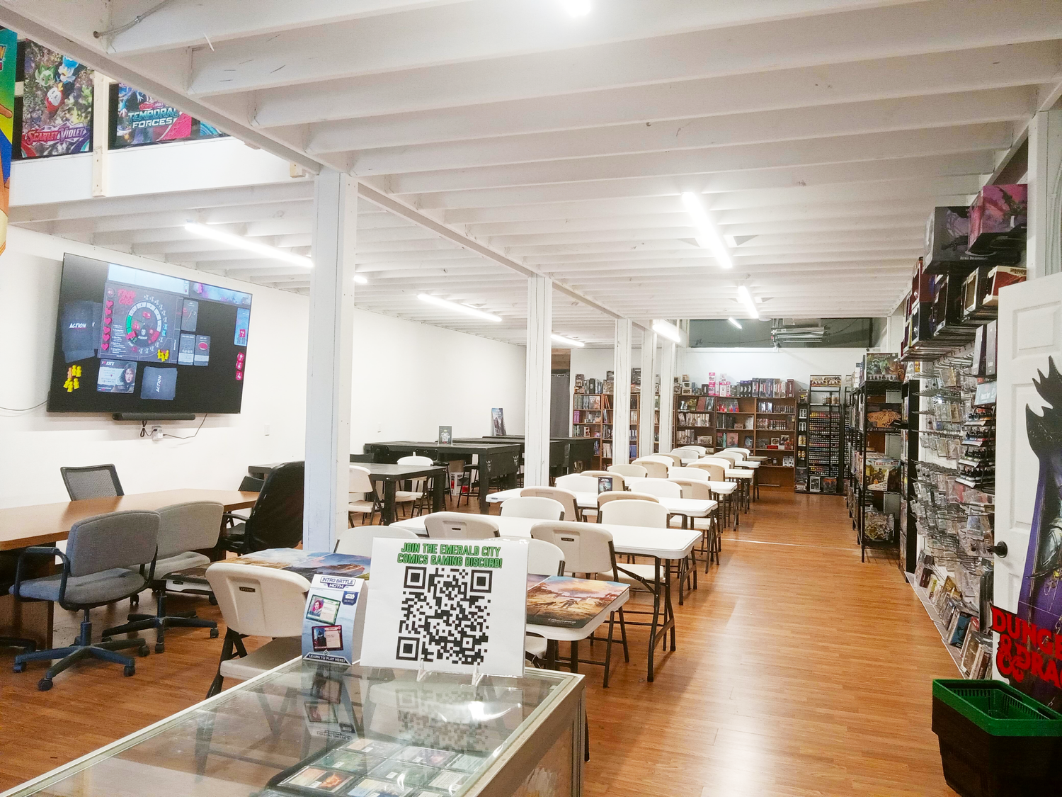 Hang out in our epic gaming room and have a great time playing classic table-top board games and TCGs.