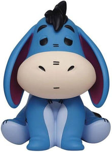 From Monogram Products. Store loose change or just add some flair to your shelf with this Disney Eeyore PVC Figural Bank. Includes a coin slot in the back and an easy to remove plastic cork at the base. Measures approximately 8" tall.