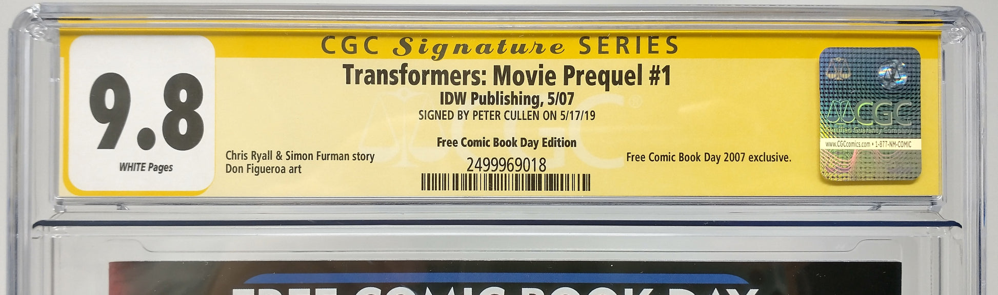 TRANSFORMERS: MOVIE PREQUEL #1 - IDW 2007 - CGC 9.8 - PETER CULLEN SIGNED